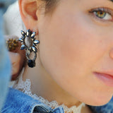 Flattering and Fascinating! Featuring an adorable floral pattern, double drop design engraved with stunning black crystals, these appealing Eres Drop Earrings are certainly to let you noticed. Coordinate this mesmerizing pair of silver hoop earrings with casual wardrobe and makes a standout appearance.