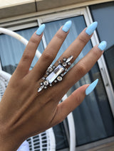 Show-off your heartiest emotions in style wearing our flake long ring! Featuring a classic open-ring design, unique artistic sketch of a broken person in front of an eternity band, this handsome long ring captures the true feelings of a broken person in love. Decorated with gorgeous zircon crystals that add spark to this exceptional piece of jewelry.