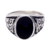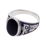 Spiritual and Spontaneous! Featuring an inspiring owl pattern band, an oval shaped natural onyx engraving in the middle, this Chaos Owl Ring represents an intuitive style ambiance for your man. Black onyx is a powerful stone that absorbs negativity and boost positive energies in your personality. A versatile signet ring that matches almost with every color scheme for a mesmerizing look.