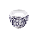 Brave and Brilliant! Featuring a stunning hand-carved lion face pattern in the middle and heart engraving one the sidelines, this Leander Impression Ring symbolizes strength and courage. Match this silver-plated signet ring with our silver pendant necklace and create a powerful style ambiance.