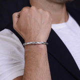 Classic and Casual! Designed in solid stainless steel, the Oceanus silver bracelet offers a secure sheen look. Featuring a unique swirly pattern, half-open cuff design, this classy bangle bracelet suits your personal style statement.