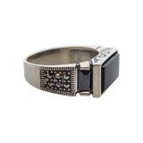 Stone-Engraved and Tribal! Featuring a traditional tribunal pattern, a rectangular large black onyx carving in the middle, the Zeus Brave Ring is perfect fashion accessory for killer looks. Hand-crafted in expensive 925 sterling silver, this classic ring band makes a strong companion to your casual dress.