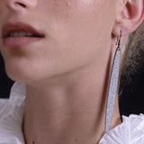 Give a touch of erotic flair to your dress matching these captivating drop earrings. Crafted in an oxidized sterling silver, this gorgeous pair of long earrings captures pure elegance and style. Silver-brushed sparkly finish on the surface allows an everlasting radiant look.