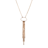 An extravagant and exotic chain necklace to capture your heart’s desire! Featuring a glamorous tassel pattern ring pendant connected to a flawless chain with 24k gold plated finish, this splendid necklace is ultimate in style and fashion. Handmade to perfection, the Alectrona Goddess Necklace provides an everlasting shine and glamour.