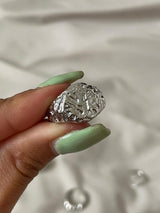 Light up your entire look wearing this alluring silver ring. Featuring an intricate oval pattern design with rough texture on the surface, attached to a lustrous eternity band, the CHLOE Ring makes a standout fashion accessory for women. One gorgeous piece of jewelry that matches almost every outfit.