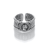Spiritual and Stunning! Featuring a classic bohemian pattern open ring design, engraved with a The figure of Queen Elizabeth, this mesmerizing ring makes a bold addition to our finger wear collection. Crafted with genuine 925 sterling silver, the Elizabeth ring goes with almost everything. Coordinate this unique silver ring with our silver chain necklace to make an ultimate modish look.