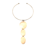 The classic elegant design choker necklace is sure to get you noticed in a large crowd. Featuring a flawless half-cut circle stainless steel cord, three stunning gold-plated pendants connected with the help of screw clasp, the vintage-inspired necklace creates a trendsetting appearance. Pair it with any outfits for a gorgeous stylish look.
